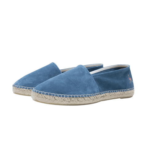 Soft suede uppers and leather heel construction. Outsole: Rope (100% Jute) + Rubber (100% Rubber). Leather padded insole. Hand-Sewn (Made in France).