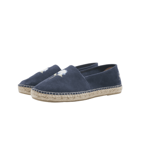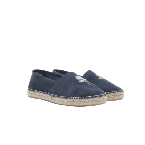 Soft suede uppers and leather heel construction. Outsole: Rope (100% Jute) + Rubber (100% Rubber). Leather padded insole. Hand-Sewn (Made in France).
